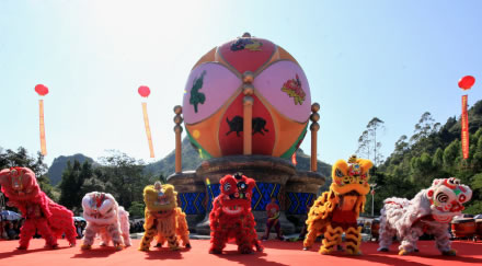 繡球廣場(chǎng)的核心景觀是直徑為8.08米的繡球雕塑,也是舊州古城作為中國繡球之鄉(xiāng)的重要文化地標(biāo),寓意代表公元808年(唐朝元和三年)靖西正式建州定州府所在地為“那簽”(今舊州古城)。繡球雕塑底座為3個(gè)壯錦環(huán)繞的銅鼓,壯錦高1.496米,寓意代表抗倭民族英雄瓦氏夫人公元1496年(明朝弘治九年)誕生于舊州。銅鼓刻有《繡球賦》等與舊州的相關(guān)詩詞。整個(gè)繡球雕塑總高12.75米,代表張?zhí)熳谟诠?275年(宋朝德祐元年)正式進(jìn)入舊州古城帶來先進(jìn)中原文化。
