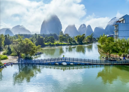 文昌閣下銜鵝泉河,背椅火焰峰,是廣西旅游最具代表性的文化地標(biāo)之一,是游客來到靖西必去的攝影打卡圣地。