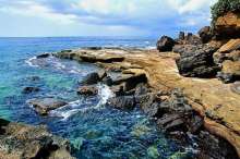 五彩灘,位于潿洲島東部,因退潮后,海蝕平臺(tái)在陽光照射下呈現(xiàn)出五彩斑斕的顏色而得名,是島上觀賞海上日出的絕佳地點(diǎn)之一,退潮時(shí),大片的海蝕平臺(tái)裸露出來,經(jīng)過海水打磨,猶如一幅幅印象派藝術(shù)畫卷。在五彩灘,可以同時(shí)看到海蝕崖、海蝕洞、和海蝕平臺(tái)三位一體的地質(zhì)結(jié)構(gòu);還可以看到潿洲先民就地取材修建房屋而留下的古采石場。
