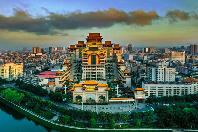 云天文化城又稱云天宮,位于玉林市江濱路,南流江畔。是一座以濃縮中國古今傳統(tǒng)文化和著名建筑風(fēng)格為一體的巨型仿古宮殿式建筑。占地面積為14萬平方米,主體建筑高21層共108米。云天文化城以石雕、木雕、鑄銅三大系列藝術(shù)性的呈現(xiàn)中華名族的歷史文化,以創(chuàng)新的手法為中國上下五千年的文化做傳承。點(diǎn)睛之作是六樓閣樓高30米,重達(dá)600噸用1千多片銅片組成的硫金鑄銅工藝品“皆大歡喜”。