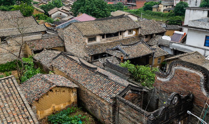 2019年,龐村獲第五批列入中國(guó)傳統(tǒng)村落名錄。 龐村清代民居群位于興業(yè)城東的龐村自然村,離縣城約1千米,始建于清乾隆四十一年(1776年),嘉年間大規(guī)模擴(kuò)建,至晚清基本定型,已有二百多年。民居群共34幢,總面積25000平方米,方向統(tǒng)一,布局嚴(yán)謹(jǐn),排列整齊,裝飾豪華,壁畫,石雕,木雕,泥塑等,內(nèi)容豐富,鮮艷奪目。 龐村清代民居群在建筑設(shè)計(jì)、造型藝術(shù)和裝飾風(fēng)格等諸多方面均有奇特之處,很有欣賞價(jià)值和建筑研究?jī)r(jià)值。建筑上有其統(tǒng)一準(zhǔn)則:方向皆是向南偏東(壬丙兼亥巳);基本上屬硬山擱檀式結(jié)構(gòu),一底一擱、翹脊、重檐、歇山頂、梁檐有幫,幫雕穿心;墻體為磚包皮,內(nèi)襯泥磚,溫度較好;每座皆設(shè)有屏風(fēng)。造型上風(fēng)格獨(dú)到。民居群造型式樣多,對(duì)稱及不對(duì)稱布局兼而有之,從一進(jìn)三開間、二進(jìn)四開間、三時(shí)四開間到三時(shí)七開間不等,單座最大者占地紙15000平方米。單組建筑內(nèi)門站相通,相鄰建筑墻連體,相互間有近2米寬、縱橫交錯(cuò)的狹巷溝通,門階以青石條鋪就,地面及巷道鋪以青磚。在裝飾上絕妙精當(dāng),在多數(shù)民居的屋檐下、屋頂下繪畫有彩色的“裙畫”,內(nèi)容多為花卉樹及鴛鴦、仙鶴、鹿等珍禽瑞獸,筆法細(xì)膩中、圓潤(rùn),顏色歷久如新,雖已有二百多年的歷史,但依然鮮艷奪目。屋檐、窗額有精美的雕刻,多雕以盤龍翔鳳、喜鵲以及如意、八寶等物體,手工精細(xì),惟妙惟肖。