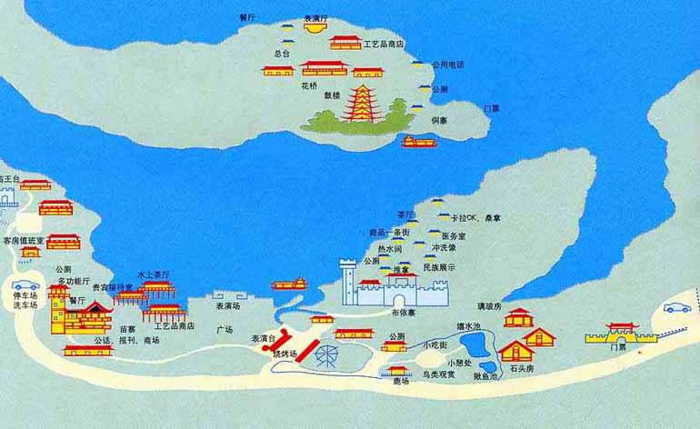 民族村不僅薈萃了大西南16個民族的原始風俗表演,而且還從全國各地引進雜技馬戲、珍奇猛獸馴化表演等等。每周還舉辦一次“土風狂歡夜”,各民族的歌舞在這里各領(lǐng)風騷,令游人大開眼界。\
