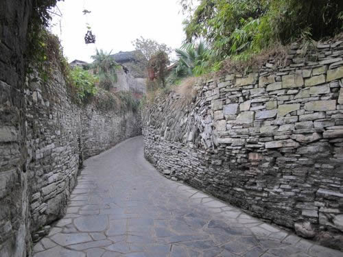 院落:青巖古鎮(zhèn)大戶(hù)人家的院落并不十分闊綽,一般是三合院,有小朝門(mén)、石院壩、花壇、石凳、小軒窗,簡(jiǎn)樸、寧?kù)o而有書(shū)香氣。小巷住著尋常百姓人家,巷子兩邊的墻多用毛石堆砌或用土筑,墻上布滿(mǎn)綠草、青苔,偶爾伸出幾枝花果,恬淡而有山野味,顯得年代相當(dāng)久遠(yuǎn)。
