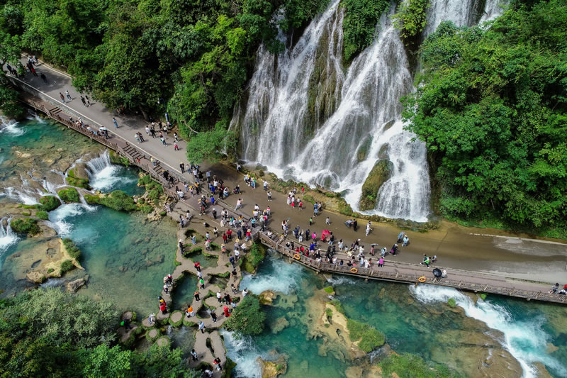 小七孔古橋建于清道光十五年(1835年),古為黔南通往廣西商旅交通要道,橫跨響水河。橋長(zhǎng)40米,寬2.2米,高5.5米,橋體取拱形,結(jié)構(gòu)玲瓏。橋首原存石碑兩座,一為《修碑》,銘筑橋功德;一為《萬古興橋碑》,刻有“群山巖浪千千歲,響水河橋萬萬年”聯(lián)句。橋腹七孔,俗稱“小七孔古橋”。主要有小七孔古橋、拉雅瀑布、68級(jí)跌水瀑布、石上森林、野豬林、水上森林、天鐘洞、臥龍?zhí)、鴛鴦湖等21個(gè)景點(diǎn)。
