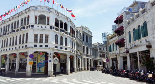 主要分布于?谑袇^(qū)的得勝沙路、文明東路、中山路、博愛(ài)路、長(zhǎng)堤路等幾條老街區(qū),是?谑幸惶幾罹咛厣慕值谰坝^,其最古老的建筑四牌樓始建于南宋,已有700多年歷史。2009年6月10日,在由國(guó)家文化部和國(guó)家文物局主辦的首屆“中國(guó)歷史文化名街”評(píng)選推介活動(dòng)中,騎樓老街憑借其極富中西特色的建筑風(fēng)格和歷史風(fēng)味的文化底蘊(yùn)榮獲首批十大“中國(guó)歷史文化名街”稱號(hào)。