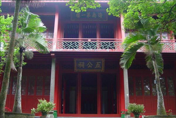 五公祠位于國(guó)興街道海府路169號(hào),是為紀(jì)念唐宋時(shí)期貶謫到海南的五位著名歷史人物:唐朝名相李德裕、宋朝名相李綱、李光、趙鼎、名臣胡詮而建的,故名五公祠,現(xiàn)為全國(guó)重點(diǎn)文物保護(hù)單位。 五公祠為一組古建筑群的統(tǒng)稱,它由海南第一樓、觀稼堂、學(xué)圃堂、東齋組成,并和蘇公祠、兩伏波祠及其拜亭、洞酌亭、粟泉亭、洗心軒、游仙洞等連成一片,建筑面積2800余平方米,連同園林、井泉、池塘約占地100畝。始建于明萬(wàn)歷年間,清光緒十五年(1889年)重修,后又多次修繕,現(xiàn)仍是熠熠生輝。