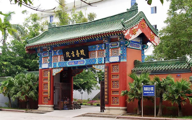 瓊臺(tái)書院位于府城中山路8號(hào),相傳是后人為紀(jì)念海南第一才子、明朝大學(xué)士丘濬而建。始建于清康熙四十四年(1705年)據(jù)傳由于丘濬號(hào)瓊臺(tái),人稱瓊臺(tái)先生,故書院由此得名。 書院現(xiàn)今是瓊臺(tái)師范學(xué)院的校址,其主樓奎星樓高二層,綠瓦、紅廊、白墻,是一座具有民族特色的磚木結(jié)構(gòu)建筑,至今保存完好。樓內(nèi)雕梁畫棟,異常別致;樓前綠樹(shù)成蔭,環(huán)境秀麗雅靜。著名的粵劇、瓊劇《搜書院》的故事就發(fā)生在此,瓊臺(tái)書院隨著《搜書院》而蜚聲海內(nèi)外。