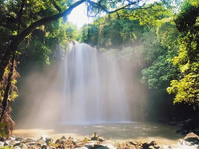 臨高古銀瀑布位于海南臨高縣皇桐鎮(zhèn)居仁村西部附近,距縣城以東20公里。史稱“古銀瀑布”,這一個(gè)大潭,有“三潭九曲”之美稱。瀑布系平川落差而致,落差20米,幅面20米,幅寬400平方米;周圍怪石林立,形狀各異,千姿百態(tài)。后面樹木茂密,宛如碧海,屹立在怪石上,枝繁葉茂,覆蓋如亭。錯(cuò)節(jié)盤根,透出倔強(qiáng)的生命力。處處花香鳥語不斷