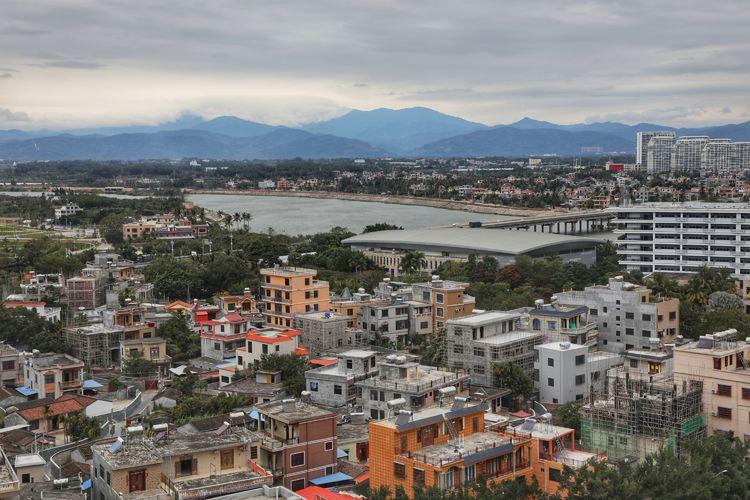 陵水黎族自治縣地勢西北高,東南低。地形主要由山地、丘陵、平原三部分組成,西北部為山區(qū),中部為丘陵區(qū),東南部為平原區(qū),自西北向東南傾斜。境內(nèi)最高峰為吊羅山三角峰,海拔1499.80米。東北部西南走向的吊羅山脈與西北部東南走向的七指嶺山脈呈“八字形”相交于縣域西北部,將東部淺海沉積平原以敞口圍住,形成陵水盆地。盆地內(nèi)部零星分布著兩大山脈及其余脈延伸形成的孤丘和臺地。