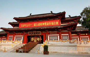 龍五爺財神殿位于三亞南山龍脈財穴之地,供奉著南海龍王第五子——圣衍,即“天下第一財神”——龍五爺。龍五爺財神殿由三個部分組成:一是招財大殿,開示信眾招財進寶;二是地宮財庫,護佑信眾守財,護財;三是。五爺萬佛閣,護佑信眾福祿傳世,富貴傳家。龍五爺財神招財大殿,開示信眾如何求財?shù)姆ㄩT。在龍五爺財神殿的大殿之上,有八根財柱,分別代表了龍五爺開示眾生如何正當(dāng)求財?shù)陌舜蠓ㄩT,只有依五爺開示,樹立了正確的八大財富觀,才能求財如意。