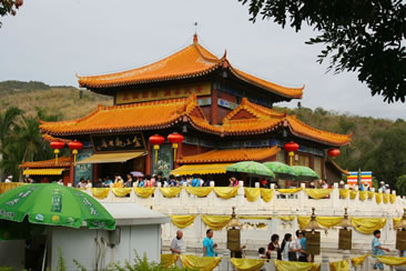 三亞南山寺位于三亞南山文化旅游區(qū)內(nèi),是一座仿盛唐風(fēng)格、居山面海的大型寺院。南山寺是已故中國佛教協(xié)會會長趙樸初親臨選址,經(jīng)國家宗教局批準(zhǔn),于1995年11月11日奠基,1998年4月12日建成。現(xiàn)有仿唐建筑仁王殿、天王殿、鐘樓、轉(zhuǎn)輪藏、東西爬山廊、東西配殿、金堂等建筑群,總建筑面積5500㎡。整個建筑氣勢恢宏,為中國近五十年來新建的最大佛教道場,也是中國南部最大的寺院。自古名寺出高僧,南山寺的方丈是86歲高齡的高僧新成大和尚,監(jiān)院是中國佛教協(xié)會副會長明生法師。南山寺第二期工程已啟動。按照規(guī)劃設(shè)計,第二期工程遵循古代大型佛教寺院方正劃一、主次分明的特點,將主要建筑集在中軸線上,在兩側(cè)設(shè)置12個不同功能的四合院。二期工程完成后,整個南山寺東西寬188米,南北長416米,共8個臺階總高差49米,總建筑面積4萬平方米。