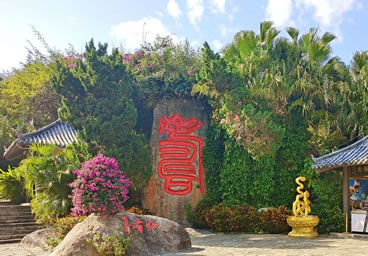 長壽谷,也叫鰲山壽谷,位于南山東麓,其地貌依攀山勢,呈谷狀縱伸。谷線全長2300米,堪稱熱帶雨林奇觀。其間鳥鳴不斷、溪水長流、林木郁郁蔥蔥、巖石突兀奇特。設(shè)計者巧用天然形勝,從不同角度,以“流動”和“靜止”的狀態(tài)揭示著傳統(tǒng)“壽”文化的內(nèi)核,融匯福壽文化于熱帶雨林奇觀。其主要景觀包括:“無量壽佛”、“流水尊者”;著名書法家啟功先生所書之“壽比南山”巨大石刻、“百歲階”、“賀壽堂”等,無一不體現(xiàn)中國傳統(tǒng)文化中增福添壽的美好祈福。是老年游客必游覽駐足的景點。