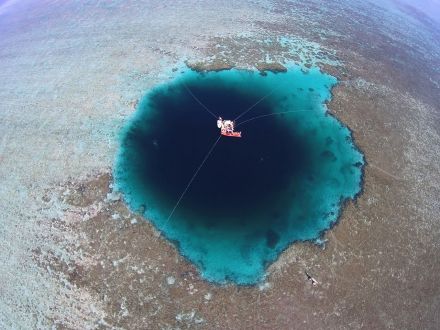 三沙永樂(lè)龍洞,漁民俗稱永樂(lè)龍洞,學(xué)術(shù)界稱之為“藍(lán)洞”,有多個(gè)。其中最知名的一個(gè)位于三沙市西沙群島之永樂(lè)環(huán)礁的晉卿島—石嶼礁盤的中間,深達(dá)300.89米,為世界上海洋藍(lán)洞之最。另外,銀嶼礁(森屏灘)礁盤上也有一深坑,水呈藍(lán)黑色,深不見(jiàn)底,漁民稱為龍坑。