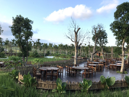 “稻田盛宴”是水稻國家公園稻田邊“長出來”的原生態(tài)餐飲品牌,將中國五千年的“稻文化”“米文化”與當地“黎家文化”結合,打造特色田園風情大型鄉(xiāng)村主題餐廳。圍繞中國“稻文化”、“海洋文化”主題,在椰樹下、稻田旁、鴨塘邊,滿足對“吃”的美妙想象。