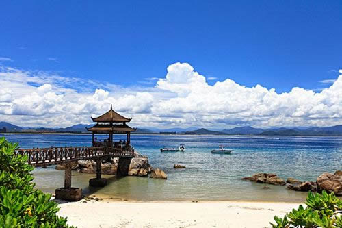 亞龍灣是海南省三亞市東郊的一處優(yōu)質(zhì)熱帶海濱風(fēng)景區(qū),沙灘平緩開闊,沙粒潔白細(xì)軟,海水清澈澄瑩,海底資源豐富,生長(zhǎng)眾多原始熱帶植被,頗具熱帶海島風(fēng)情。海灣距離市中心區(qū)約10公里,以野豬島為中心,南有東洲島、西洲島,西面有東排、西排,可開展多種水上運(yùn)動(dòng)。