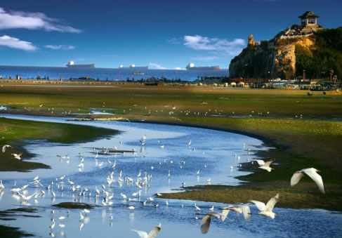 北戴河景區(qū)地處河北省秦皇島市北戴河區(qū)東部沿海,東北至鴿子窩公園,是著名的觀鳥(niǎo)勝地,被譽(yù)為"觀鳥(niǎo)的麥加"。這里有6600多公頃森林,50多畝濕地,戴河、恒河等入?谛纬傻哪酁、瀉湖以及滯緩的河道,被國(guó)際濕地保護(hù)公約命名為"北戴河濕地",并受到國(guó)家保護(hù)。