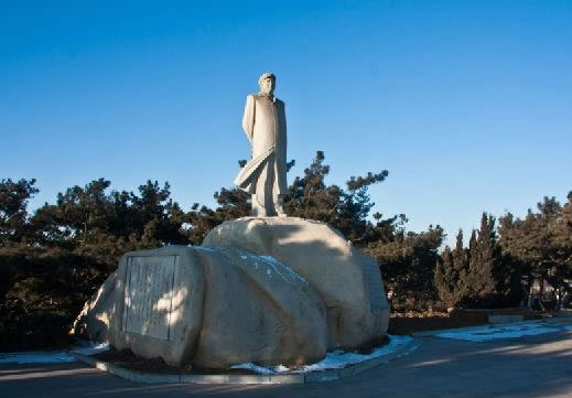 主席雕像高3.2米,仿花崗巖基坐高2.7米,在基座東部用大理石刻著毛澤東的詞《浪淘沙·北戴河》。塑像是北戴河區(qū)政府1992年為紀(jì)念毛澤東誕辰100周年而敬塑的。
