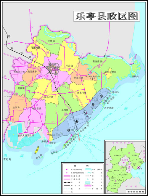 鎮(zhèn):樂亭鎮(zhèn)、湯家河鎮(zhèn)、胡家坨鎮(zhèn)、王灘鎮(zhèn)、閆各莊鎮(zhèn)、馬頭營(yíng)鎮(zhèn)、新寨鎮(zhèn)、汀流河鎮(zhèn)、姜各莊鎮(zhèn)、毛莊鎮(zhèn)、中堡鎮(zhèn)