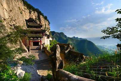 繞山登上十八盤,便到達(dá)最高處的媧皇閣。媧皇宮的建筑布局,充分利用了原有地形,依山就勢,匠心獨運。