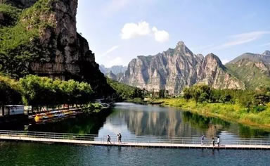 拒馬河是河北省內(nèi)惟一一條長年不斷的河流。拒馬河景區(qū)不僅風光秀麗,氣候宜人,而且有眾多的文物古跡與自然風光。區(qū)內(nèi)有沙蟒攔路、石猴戲水、石門頓開、天橋拱立、懸崖棧道、孩童鬧學等“下莊八景”。由于得天獨厚的優(yōu)勢條件,該景區(qū)建起了眾多的賓館、飯店,有一首打油詩這樣寫道“徜徉翡翠中,夜伴歌舞聲,星際蕩葉舟,脫塵生戀情”勾勒出一幅美好畫卷,如詩如畫的拒馬河景區(qū)便成了人們觀光娛樂勝地和食宿基地。