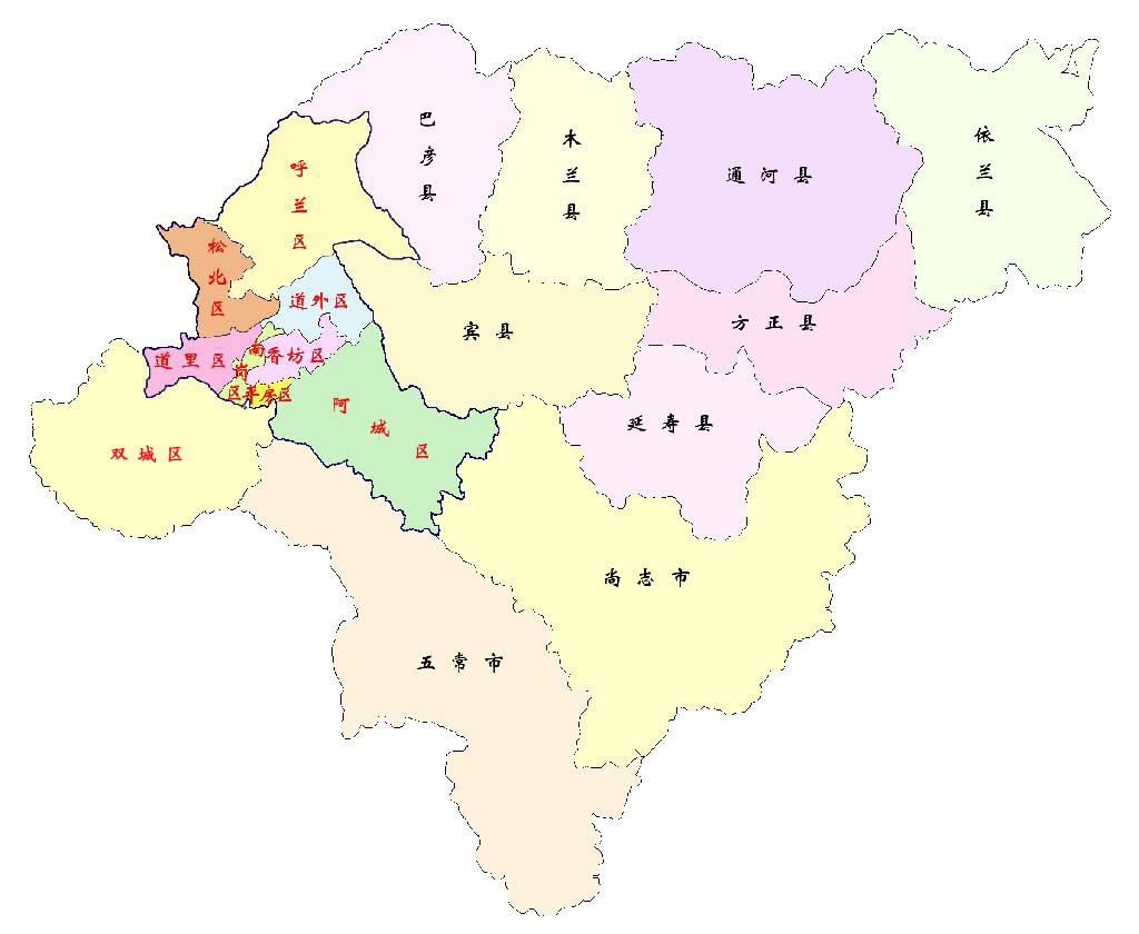 哈爾濱市轄9個(gè)市轄區(qū)、7個(gè)縣,代管2個(gè)縣級(jí)市: