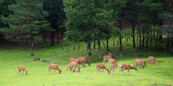 金山鹿苑位于鶴伊公路75公里處,距離金林區(qū)局址7公里處,占地面積764公里。這里溪流淙淙、綠草如茵,群山環(huán)抱、景色怡人,歐陸風韻盡顯其中,酷似天然的高爾夫球場,F(xiàn)有梅花鹿、馬鹿等珍貴鹿種。是AAA級國家旅游景區(qū)。 金山鹿苑之所以稱為天然鹿苑,主要是這里采用人工飼養(yǎng)與自然放牧相結(jié)合的半牧式養(yǎng)殖方式飼養(yǎng)鹿群,既保護了鹿種的天然野性,又提高了鹿種的繁殖能力和經(jīng)濟價值。金山鹿苑已成為我區(qū)種鹿繁育、技術(shù)服務(wù)推廣、鹿產(chǎn)品精深加工、銷售、旅游、科研開發(fā)基地。 金山鹿苑其景色優(yōu)美,每年都吸引大量游客前來旅游觀光。2002年中央“心連心”藝術(shù)團曾在此設(shè)立分會場進行慰問演出。是歷屆中國·伊春市小興安嶺森林節(jié)必選觀光路線,曾是伊春旅游形象片《綠色伊春》和伊春市歌《林都伊春》主要拍攝場地。2009年接待過35個駐我國大使、參贊和夫人,國內(nèi)、國際聲望遠播。