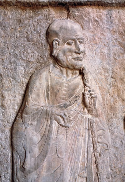 唐代龍門石窟的重點洞窟中,以盧舍那像龕一組尺度宏偉的藝術(shù)群雕琢最為著名。這座依據(jù)《華嚴(yán)經(jīng)》雕鑿的暢開式像龕,以雍容大度、氣勢非凡的盧舍那佛為中心,用一周極富情態(tài)質(zhì)感的美術(shù)群體形象,將佛國世界那種充滿了祥和色彩的理想意境表達(dá)的淋漓盡致、流韻綿長。