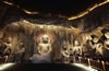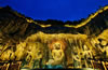 賓陽中洞是北魏時期(公元386~512年)的代表性作品。這個洞窟前后用了24年才建成,是開鑿時間最長的一個洞窟。洞內(nèi)有11尊大佛像。主像釋迦牟尼像,面部清秀,神情自然,堪稱北魏中期石雕藝術(shù)的杰作。主像座前刻有兩只姿態(tài)雄健的石獅。左右侍立二弟子,二菩薩,菩薩像含笑凝眸,溫柔敦厚。洞中還雕刻著眾菩薩,弟子聽法的浮雕像,栩栩如生?唔旓w天仙子的刻畫也十分傳神。