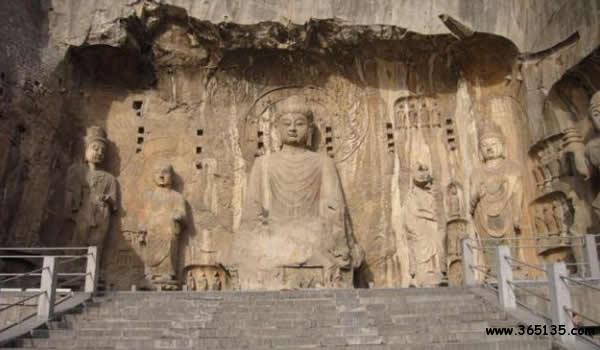 龍門:位于洛陽市洛龍區(qū)龍門鎮(zhèn)伊河兩岸。這里“兩山相對,望而若闕。伊河歷其間北流”(水經(jīng)注)所以古 稱伊闕。伊河兩岸的龍門山和香山,石壁峭立,空缺如門,由于處在隋、唐帝都之南故叫龍門。龍門滿山翠柏,瀑布飛泉,長橋臥空,伊水碧流,尤以龕窟雕飾著稱于世。自古以來,“龍門山色”被譽(yù)為“洛陽八大景”之首。龍門石窟開始營造于北魏孝文帝太和十九年。歷經(jīng)東魏和西魏,北齊和北周,以及隋、唐連續(xù)營造達(dá)四百多年之久。以后,五代、北宋、清均有雕造,但為數(shù)甚少。據(jù)龍門文物保管所統(tǒng)計(jì)兩山現(xiàn)存窟龕二千一百多個(gè),佛塔四十多座,大小造像十萬余尊,其中最大的高17.14米,而最小的僅有2厘米。龍門石窟規(guī)模宏大,分布于伊河兩岸懸崖峭壁之上的潛溪寺、賓陽北洞、賓陽中洞、奉先寺、萬佛洞、蓮花洞、藥方洞、古陽洞、賓陽南洞、大萬伍佛洞、擂鼓臺三洞、伊闕佛龕之碑、龍門二十品,總計(jì)長達(dá)一千多米,內(nèi)容豐富多彩,雕藝精美而超凡。有史以來,它與敦煌石窟、云岡石窟,并稱為我國三大石刻藝術(shù)寶庫。一九六一年國務(wù)院確定龍門石窟為全國重點(diǎn)文物保護(hù)單位。