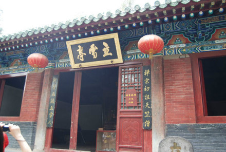 塔林北約一公里為初祖庵。它是河南省遺存文物中最古老的一 座木結(jié)構(gòu)建筑,是為紀(jì)念達(dá)摩面壁而修建的。殿的檐柱、內(nèi)柱、墻下雕石以及神臺(tái)周圍都有浮雕。大殿神龕內(nèi)供著達(dá)摩祖師像。