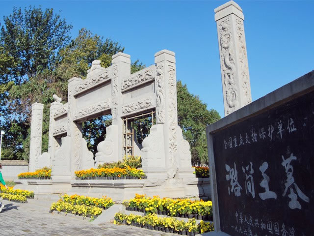潞王陵是中國明代(公元1368~1644年)潞簡王的陵墓。潞簡王朱翊鏐(公元1568~1614年)是明穆宗的第四子。潞簡王陵墓由神道、潞王墓和次妃趙氏墓組成,總面積達(dá)400余畝。據(jù)專家介紹,潞簡王陵墓的主要建筑布局與北京明皇陵基本相同,以宏偉的規(guī)模、精美的石刻著稱,對(duì)于研究明代后期地方藩王的陵寢形制以及當(dāng)時(shí)的建筑、雕刻藝術(shù)等方面,具有重要意義。它以其精美的石刻藝術(shù)、神奇的民間傳說,吸引著四方游客。
