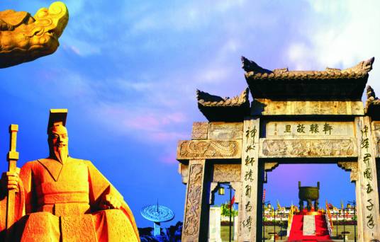 新鄭市黃帝故里景區(qū),位于河南省鄭州市新鄭市軒轅路1號(hào),為漢籍史書(shū)中記載有熊氏的族居地,故有熊?chē)?guó)之墟。漢代建軒轅故里祠,歷代迭修;明隆慶四年(1570年)于祠前建軒轅橋,清康熙五十四年(1715年),新鄭縣令許朝柱于祠前立“軒轅故里”碑。