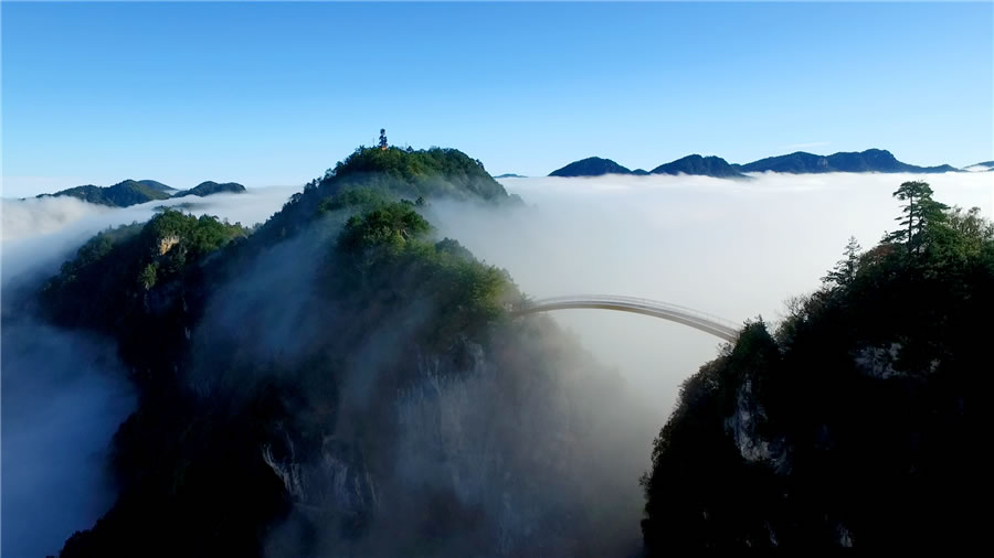 (2)流云佛光型:獨(dú)特的地形和濕潤(rùn)的氣候造就了綺麗壯觀的云霧霞光,是神農(nóng)架特有的景致。更神奇的是,云海之上偶爾懸起一輪五彩光環(huán),環(huán)中似有人影晃動(dòng),那就是舉世罕見的“佛光”,中央新聞電影制片廠記者曾在天門埡、燕子埡一帶攝下這一自然奇景,使神農(nóng)架成為與峨眉山齊名的又一塊仙山佛地。