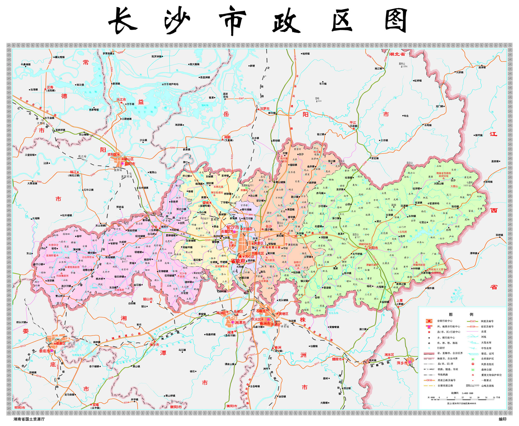 長沙轄6個(gè)區(qū)、1個(gè)縣、代管2個(gè)縣級(jí)市: