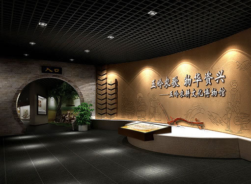 五嶺農(nóng)耕文明博物館具有典型的湘南特色。外觀上,青磚黑瓦,翹檐飛角,蘭桂竹木點(diǎn)綴于庭院內(nèi)外;內(nèi)部為兩層六間大廳,均采用鏤空暗紅漆木門,地鋪黑色復(fù)古瓷磚,整體墻面為素凈溫和的灰色細(xì)格棱式樣,另依陳列內(nèi)容而有油畫、背景畫、土磚墻、木板墻等不同設(shè)計(jì)。 陳列內(nèi)容方面,五嶺農(nóng)耕文明博物館共分為兩大板塊:一是五嶺農(nóng)歌——五嶺農(nóng)耕文明實(shí)物展;二是物華資興臨時(shí)展廳。五嶺農(nóng)歌板塊作為主體展覽,共展示了700余件形制和功能各異的農(nóng)耕文化實(shí)物,其中包括一件二級(jí)文物——雕刻精美的清代神龕,三級(jí)文物68件,例如清代木斗、龐大齊全的油榨工具、稀少的清代紅木扁擔(dān)及根雕太師椅等等。五嶺農(nóng)歌展依據(jù)歷史地理背景、基本勞動(dòng)生產(chǎn)、手工作業(yè)、民俗文化等幾方面的內(nèi)容分設(shè)了序廳、古老的傳說、山居方式、豐衣足食、耕讀傳家、尾廳六大展區(qū),內(nèi)設(shè)19個(gè)陳列組別。為了突出生動(dòng)性,達(dá)到讓游客身臨其境的效果,該館綜合運(yùn)用圖文、實(shí)物、雕塑造型、音響、燈光及背景畫等多種表現(xiàn)手段,設(shè)立了多個(gè)場(chǎng)景,例如稻田、林中小屋、油榨坊、農(nóng)家灶屋、打鐵、婚嫁等等,再現(xiàn)了一個(gè)個(gè)充滿生機(jī)和生活氣息的農(nóng)業(yè)生產(chǎn)生活情境。物華資興臨時(shí)展廳分為物產(chǎn)篇和風(fēng)光篇兩部分,分別展示資興豐富的礦產(chǎn)、野生動(dòng)植物等資源以及優(yōu)越的自然環(huán)境和人文環(huán)境,是游客了解資興的一個(gè)小窗口。