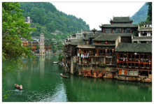 鳳凰古城,占地面積約10平方千米,城內(nèi)青石板街道,江邊木結(jié)構(gòu)吊腳樓,以及朝陽宮、古城博物館、熊希齡故居、天王廟、大成殿、楊家祠堂、沈從文故居、萬壽宮等建筑。