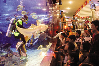 為使都市人品味玩魚樂(lè)趣,海底世界專設(shè)玩魚、購(gòu)魚一條街,令人休閑渡假時(shí)陶醉無(wú)窮的魚趣之中。 總之,整個(gè)園內(nèi)建設(shè)充分體現(xiàn)出現(xiàn)代化、高品位的海洋文化氛圍,是游人開(kāi)闊眼界、休閑渡假的文化勝地。