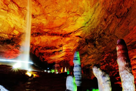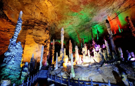 黃龍洞位于湖南省張家界市核心景區(qū)武陵源風(fēng)景名勝區(qū)內(nèi),是世界自然遺產(chǎn)、世界地質(zhì)公園武陵源的有機(jī)組成部分,屬典型的喀斯特巖溶地貌,以其龐大的立體結(jié)構(gòu)洞穴空間、豐富的溶洞景觀、水陸兼?zhèn)涞挠斡[觀光線路獨(dú)步天下,被列為國際旅游洞穴會(huì)員、全國35個(gè)王牌景點(diǎn)之一、中國首批AAAA級(jí)旅游景區(qū)、中國旅游首批知名品牌、中國馳名商標(biāo)、湖南省最佳旅游景區(qū)、張家界旅游精品線之一,享有“世界溶洞奇觀”、“世界溶洞全能冠軍”之美譽(yù),2005年被評(píng)選為“中國最美旅游溶洞”。