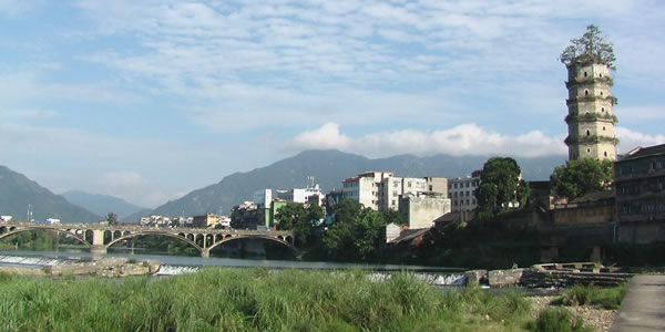 出縣城沿平溪江西行4公里,江水?dāng)財(cái)嘌┓迳綎|去,兩安險(xiǎn)峰對(duì)峙,形成峽谷。相傳峽谷為懸崖覆蓋,江水穿洞而去,至此形成深潭,名曰“洞口潭”,后演變?yōu)?ldquo;洞口塘”,洞口之名源于此。