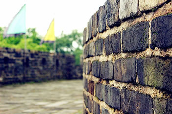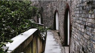 2、月城城墻壁上有八個大炮洞,火炮隱置洞內(nèi),可避免敵炮的轟擊,士兵也比較安全。