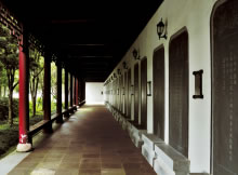 碑廊是御碑園的主要建筑,分列碑園東西兩側(cè),為硬山卷棚式仿古建筑。全長84米,壁上鑲嵌明清御祭文碑51塊,宋、明、清、民國和中華人民共和國等歷史時期有代表性的記事碑5塊,共56塊。最早御祭文碑是洪武四年(1371年)朱元璋登基告祭文碑。