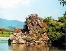 龍腦石又稱石龍鼓,位于陵前斜獺水水岸的炎帝陵桃源洞國家自然保護(hù)區(qū),巨石臨江,狀似龍首,江水奔注噴薄。傳說當(dāng)年炎帝靈柩水運至此,傾盆大雨,江水翻騰,一陣湍急旋渦,將炎帝靈柩沉入水底,卷入石穴。原來是水中的金龍為感炎帝救治之恩遂躍出水面,將炎帝請至龍宮作客。后來天上玉帝為懲罰金龍無理,用圣旨罰金龍化為石龍。龍頭化為龍腦石,龍爪化為龍爪石。至今龍腦石、龍爪石風(fēng)韻猶存,巨龍首兀立江面,栩栩如生,秀色可餐,風(fēng)景迷人,為炎陵自然勝景。