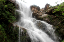 水簾洞是花果山上最有特色、最有代表性的景點(diǎn)。這是《西游記》中孫悟空的老家水簾洞的原型。早在《西游記》成書(shū)之前,水簾洞已名聞遐邇。在明顧乾的《云臺(tái)三十六景》以及張朝瑞等人的游記和各類(lèi)方志文獻(xiàn)中已有詳盡生動(dòng)的描述。洞門(mén)前,有明嘉靖二十三年(1544年)海州知州王同的“高山流水”題刻,還有“神泉普潤(rùn)”、“靈泉”等勒石。正如《西游記》所寫(xiě):“一派白虹起,千尋雷浪飛!ぁぁぁぁぁや郎俨,眞似掛簾帷”。