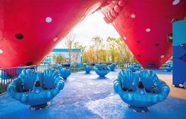 逍遙水母在奇幻的海洋王國里,是精靈般的存在。繽紛的水母在海藍(lán)色的模擬裝置上漂浮,能輕易的成功吸引親子家庭的眼神。
