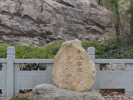 沿著象石邊的山腳石砌小路,西行約五六十米,摩崖造像石刻便展現(xiàn)在眼前。在一處赭黃色的高低參差的崖壁上,依山就勢(shì)鐫刻著100多個(gè)大小不一、造型各異的人像,其內(nèi)容有道家傳說(shuō),也有佛教故事。這些人物形象,雖經(jīng)歷了1000多年的櫛風(fēng)沐雨,但仍栩栩如生,輝耀于石壁。專家認(rèn)為孔望山摩崖石刻,是我國(guó)迄今為止發(fā)現(xiàn)的最早的一處佛教摩崖造像,1980年,經(jīng)國(guó)內(nèi)權(quán)威人士鑒定,確認(rèn)這是東漢時(shí)期佛教內(nèi)容的造像,它比敦煌莫高窟還要早200年,被錄入《世界古跡叢書》的“中國(guó)卷”。過(guò)去一直認(rèn)為佛教是自西向東傳播,孔望山摩崖造像的發(fā)現(xiàn),無(wú)疑是對(duì)傳統(tǒng)的定論提出了挑戰(zhàn)。 它是我國(guó)佛教史和美術(shù)史上的瑰寶,也是連云港市最珍貴的古跡之一。
