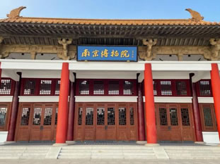 建國50年來,首先把原中央博物院留下的建筑未了工程,修繕而裝飾一新,屋頂鋪蓋金黃色琉璃瓦,添砌仿漢闕大門,修筑庭前馬路,綠化周圍環(huán)境,興建大殿前的月臺。門前面向通往東郊明孝陵和中山陵的林蔭大道,滬寧高速公路經(jīng)門口穿過而進入市內(nèi)繁華地區(qū);門內(nèi)庭園廣闊,花木蔥蔥似錦,襯托出仿遼式宮殿建筑的陳列大殿的端嚴和壯觀。