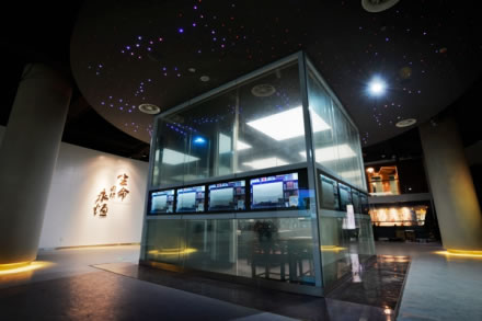 數(shù)字館位于民國館北側(cè)地下,由實體展館和網(wǎng)絡虛擬館構成。實體館約1200平方米,用抽象概念輔以歷史事實的表現(xiàn)方式詮釋中華文明發(fā)展歷程,總體風格時尚亮麗。突破“以展柜和展板為主”的傳統(tǒng)展陳方式,采取“不封死、不看穿”錯層交疊的空間構建手段,集合分列式多屏幕、透明屏、二維碼等多媒體形式,運用實時摳像、動作捕捉等數(shù)字技術,將空間、裝飾、媒體硬件及數(shù)字內(nèi)容結合起來,營造立體豐富的展示環(huán)境,引導觀眾沿著流線移步換景。網(wǎng)絡虛擬館通過網(wǎng)絡和圖像識別技術復原實體展館的空間和內(nèi)容,是實體展館的延伸。以網(wǎng)絡為平臺,觀眾自己制作的展示內(nèi)容,通過遴選的,也可推送到實體展館。實體展館分為六大展區(qū),序廳:以《時光》為題,通過流水、風沙、變幻的星空,體現(xiàn)“時間”對于人類文明的獨特作用,營造時間飛逝,萬物滄桑的情境感。萌動與發(fā)軔:用獨具風格的影像勾勒出初生的人類試圖征服自然時表現(xiàn)出的勇氣與“傻氣”。進取與成長:體現(xiàn)中華文明的快速發(fā)展。用歷史故事表現(xiàn)“熱血青年”、“因為愛情”、“君子愛財”、“意氣風發(fā)”等人生路上的喜怒哀樂。擴張與融合:用立面寬12.5m,高5.9m的C形巨幕影片,以戰(zhàn)爭、帝國故事表現(xiàn)人類進步過程中的豪邁激越、堅韌不拔以及全盛時期的聲色犬馬、宗教宣揚。封閉與開放:截取閉關鎖國、鴉片戰(zhàn)爭、文明絲路中的歷史片段,表現(xiàn)中華文明從開拓進取逐漸轉(zhuǎn)向內(nèi)斂、保守、固步自封的心態(tài)。生命因你永恒:總結在初生、發(fā)展、強盛、衰落這一螺旋式漸進的歷史進程中,文化和民族產(chǎn)生了融合,政治制度、科學技術和文化藝術也在不斷成熟、進步,文明向更加美好和睿智的方向前進。