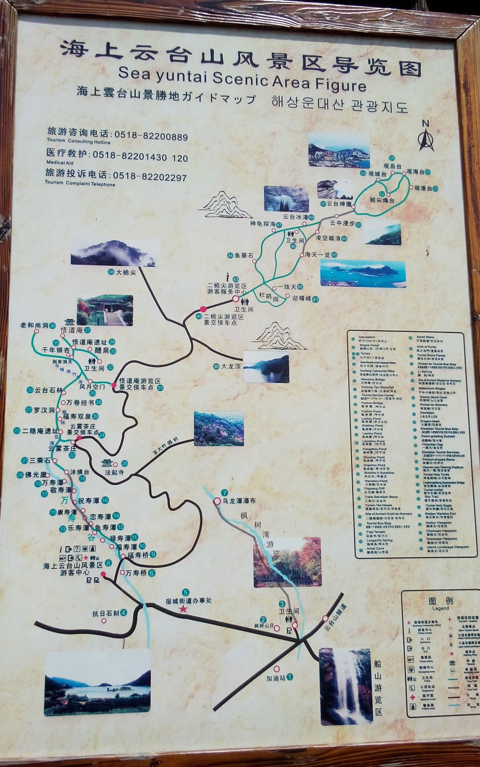 云臺山古稱郁州山,唐宋時稱蒼梧山。唐李白詩:“明月不歸沉碧海,白云愁色滿蒼梧。”宋蘇軾詩:“郁郁蒼梧海上山,蓬萊方丈有無間”,寫的都是云臺山。她原來只是黃海中的一列島嶼,18世紀(jì)方與大陸相連。遂形成峻峰深澗,奇巖坦坡,山光水色,獨具神姿 ,被譽為:“海內(nèi)四大名靈”之一。明嘉靖年間道教興盛 ,道士云集達(dá)兩萬之眾,山又被譽為“七十一福地。