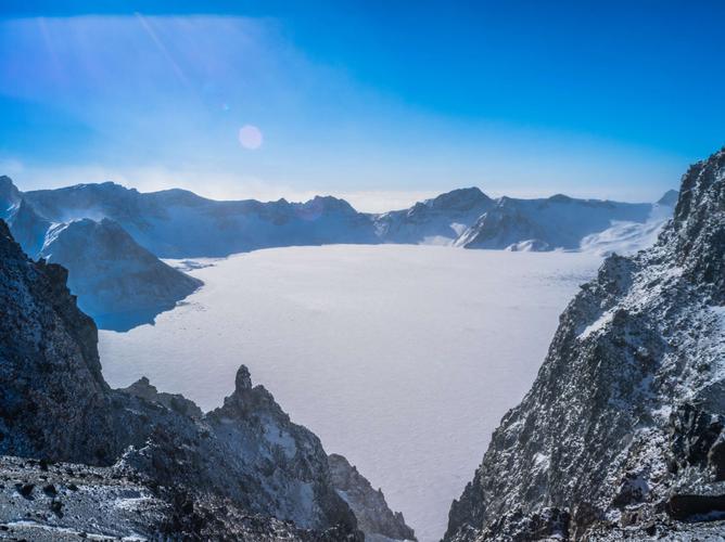 天池冬季冰層一般厚1.2米,且結(jié)冰期長(zhǎng)達(dá)6、7個(gè)月。不過(guò),天池內(nèi)還有溫泉多處,形成幾條溫泉帶,長(zhǎng)150米,寬30、40米,水溫常保持42°C,隆冬時(shí)節(jié)熱氣騰騰,冰消雪融,故有人又將天池稱(chēng)為“溫涼泊”。