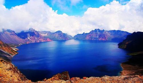 長(zhǎng)白山天池,又稱(chēng)白頭山天池,坐落在吉林省東南部長(zhǎng)白山自然保護(hù)區(qū)內(nèi),是中國(guó)和朝鮮的界湖,雙方各擁有一部分水域。天池南北長(zhǎng)約4400米,東西寬約3370米,其池水的海拔高度為2189.1米,最深處為373米,平均204米,水面面積9.82平方千米,周長(zhǎng)13.1千米。據(jù)《長(zhǎng)白山江岡志略》記載:“天池在長(zhǎng)白山巔的中心點(diǎn),群峰環(huán)抱,離地高約20余里,故名為天池!